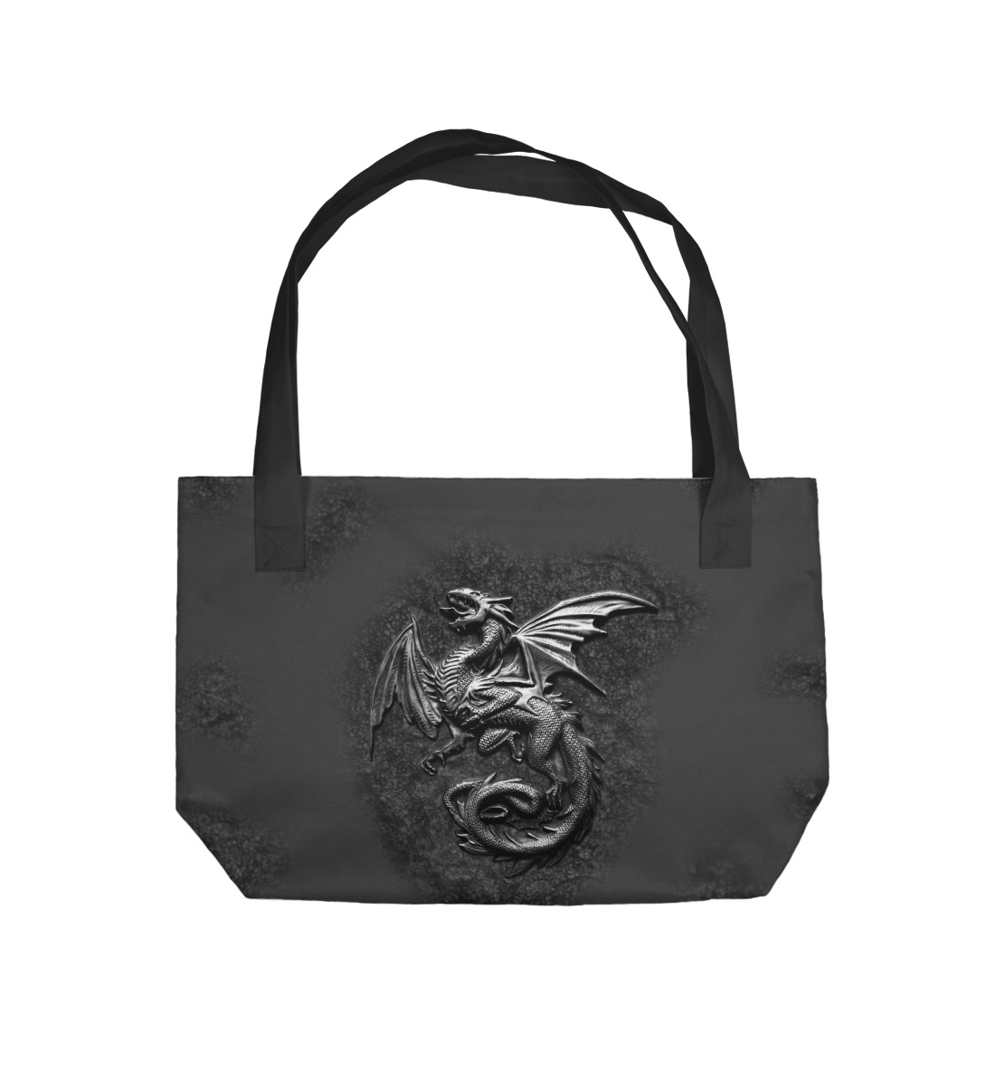 Пляжная сумка с принтом «Стальной Дракон на скале.»