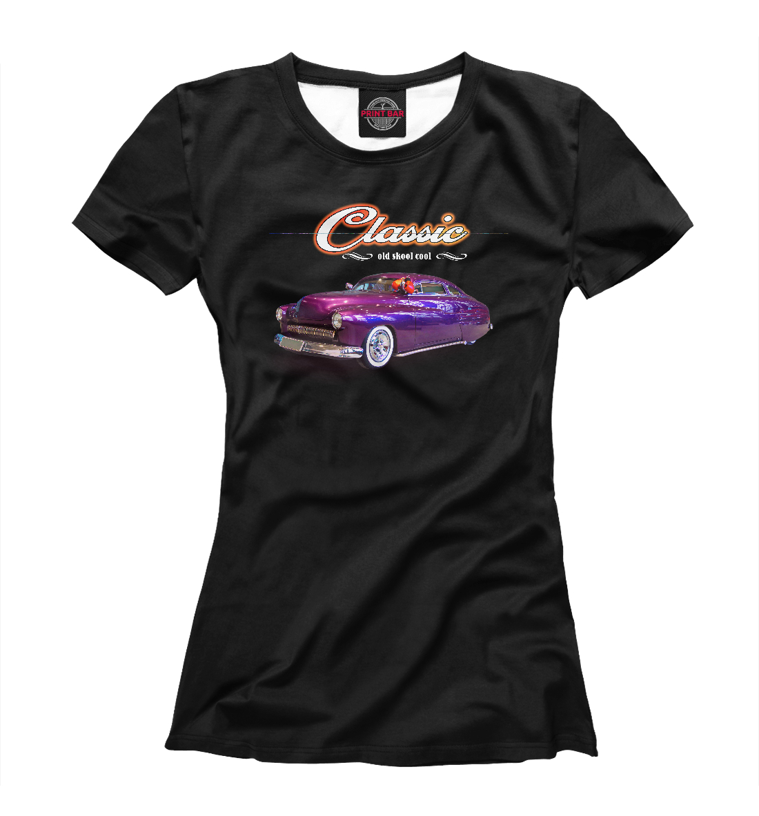 Женская футболка с принтом «Американский олдтаймер Mercury на черном»