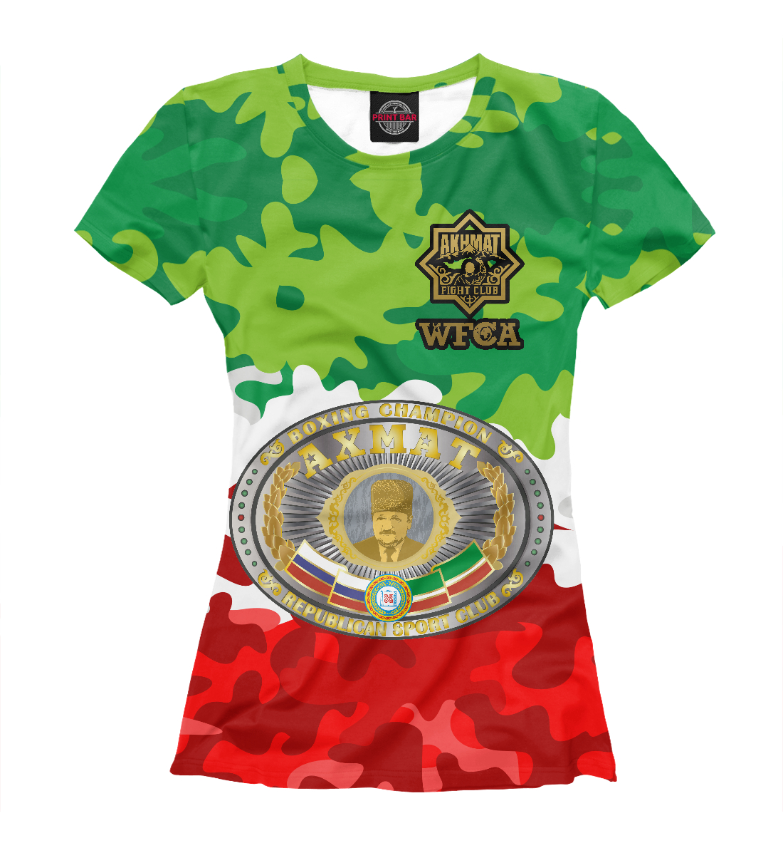 Женская футболка с принтом «Чемпионский пояс Ахмат»