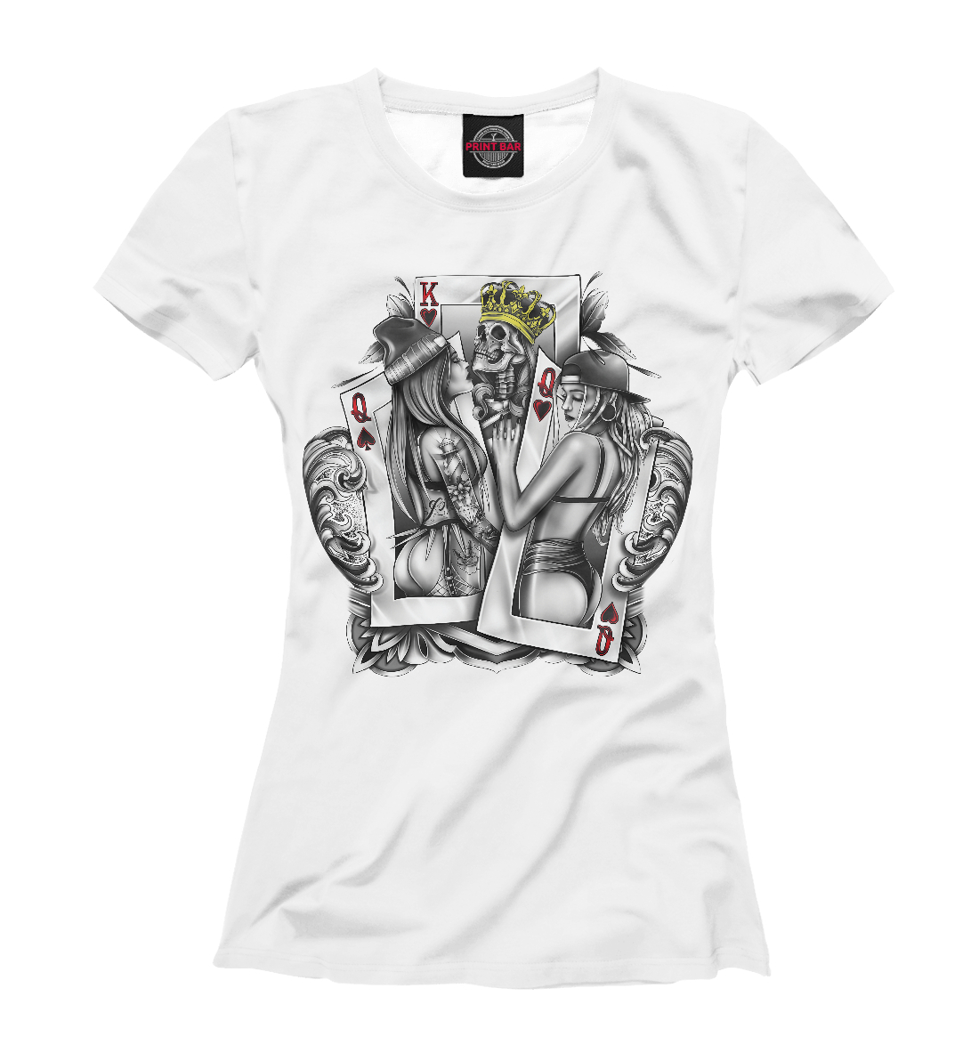 Женская футболка с принтом «Череп - джокер»