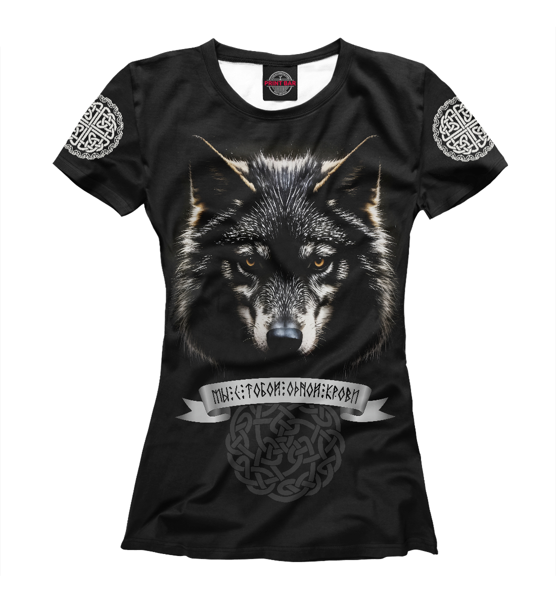 Женская футболка с принтом «Чёрный волк - мы с тобой одной крови»