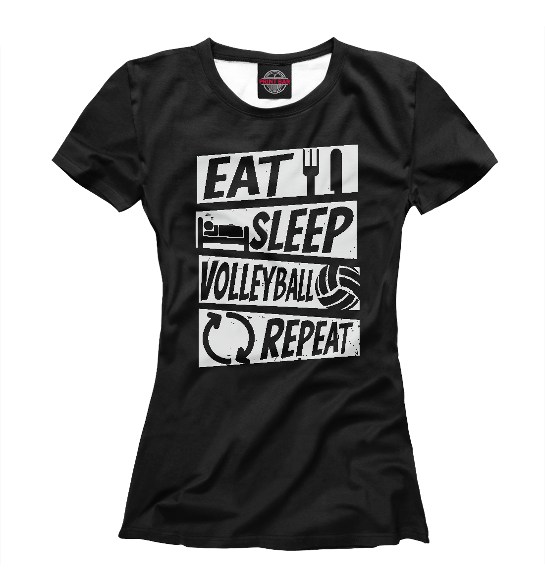 Женская футболка с принтом «Eat, Sleep, Volleyball»
