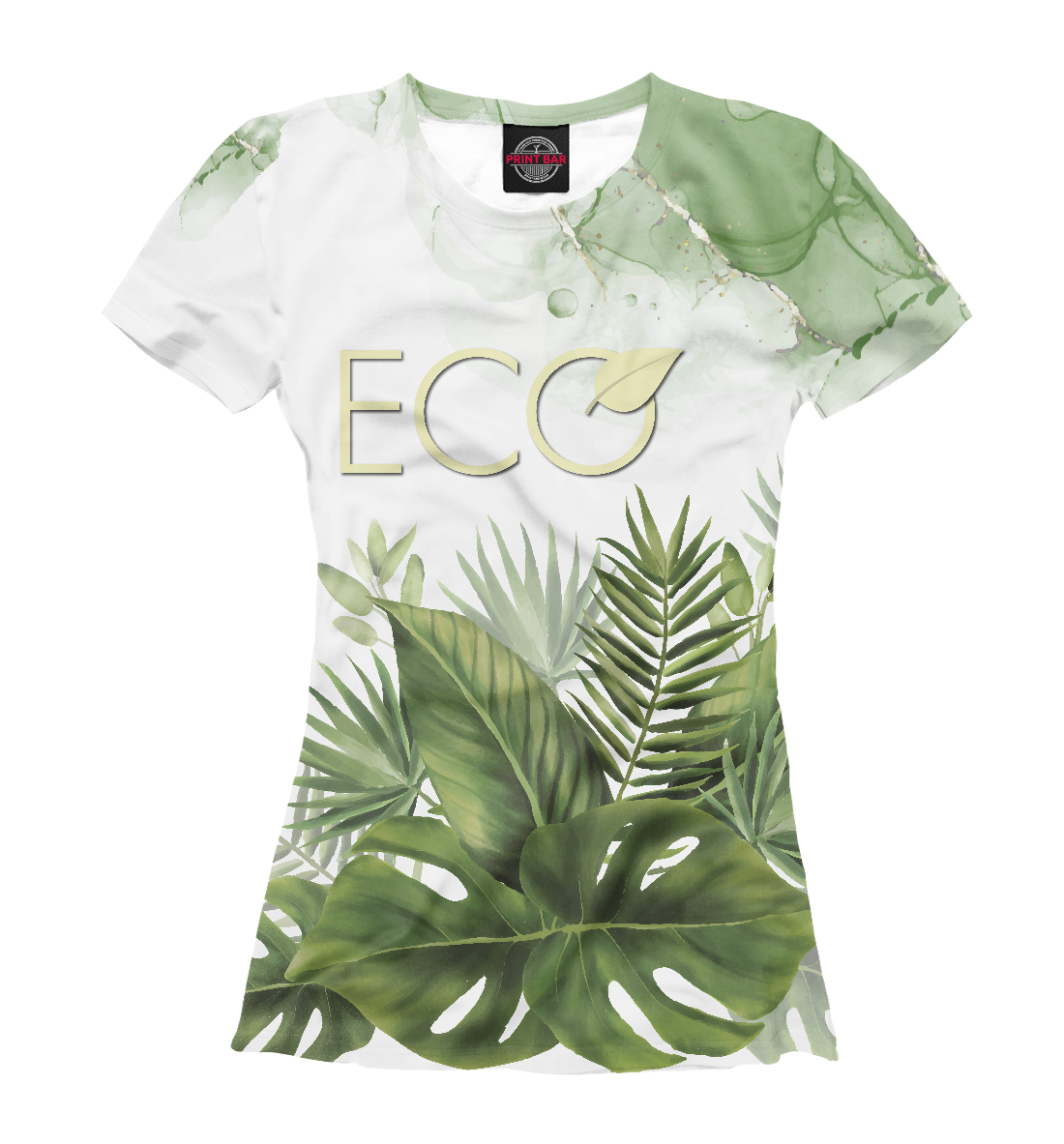 Женская футболка с принтом «ECO Friendly на фоне красивых растений»