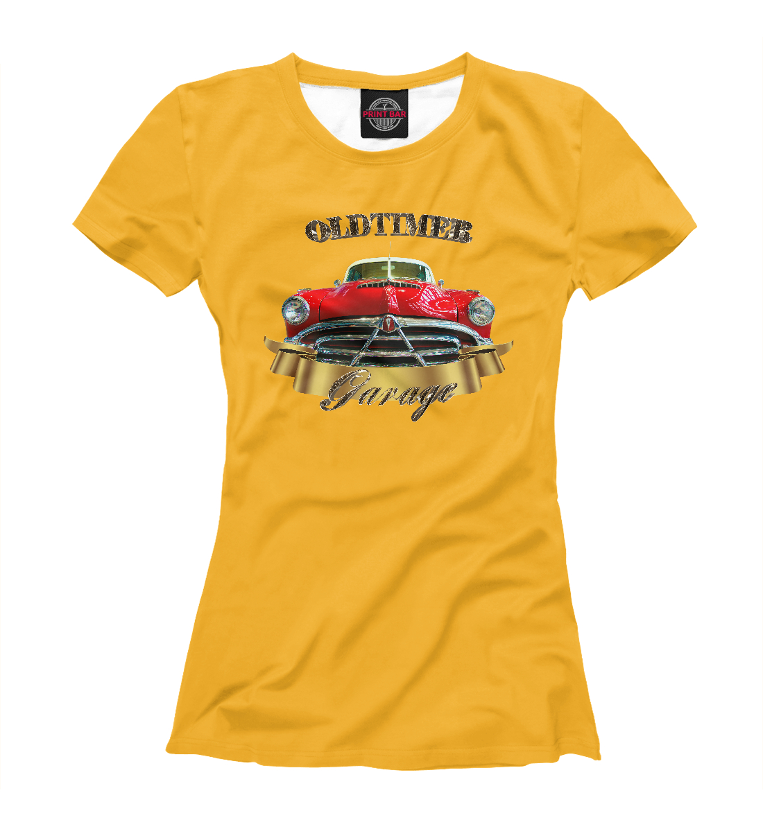 Женская футболка с принтом «Классический автомобиль Hudson на желтом»