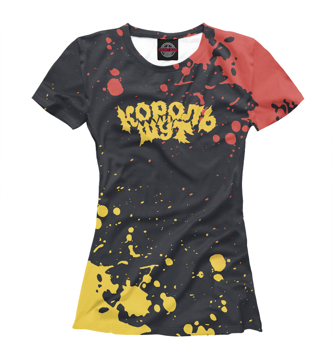 Женская футболка с принтом «Король и Шут желто красный фон»