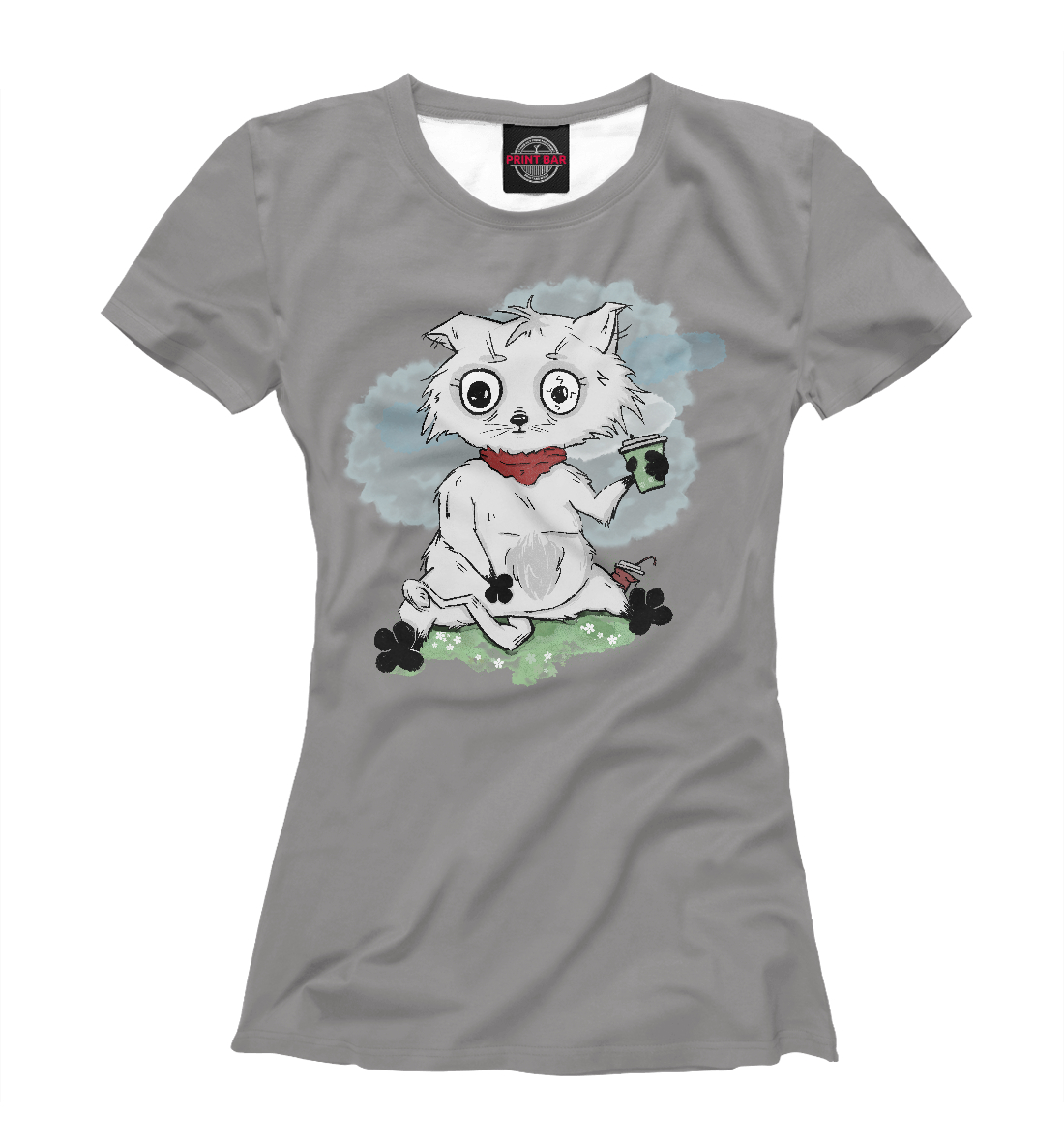 Женская футболка с принтом «Котик кофеман (серый фон)»