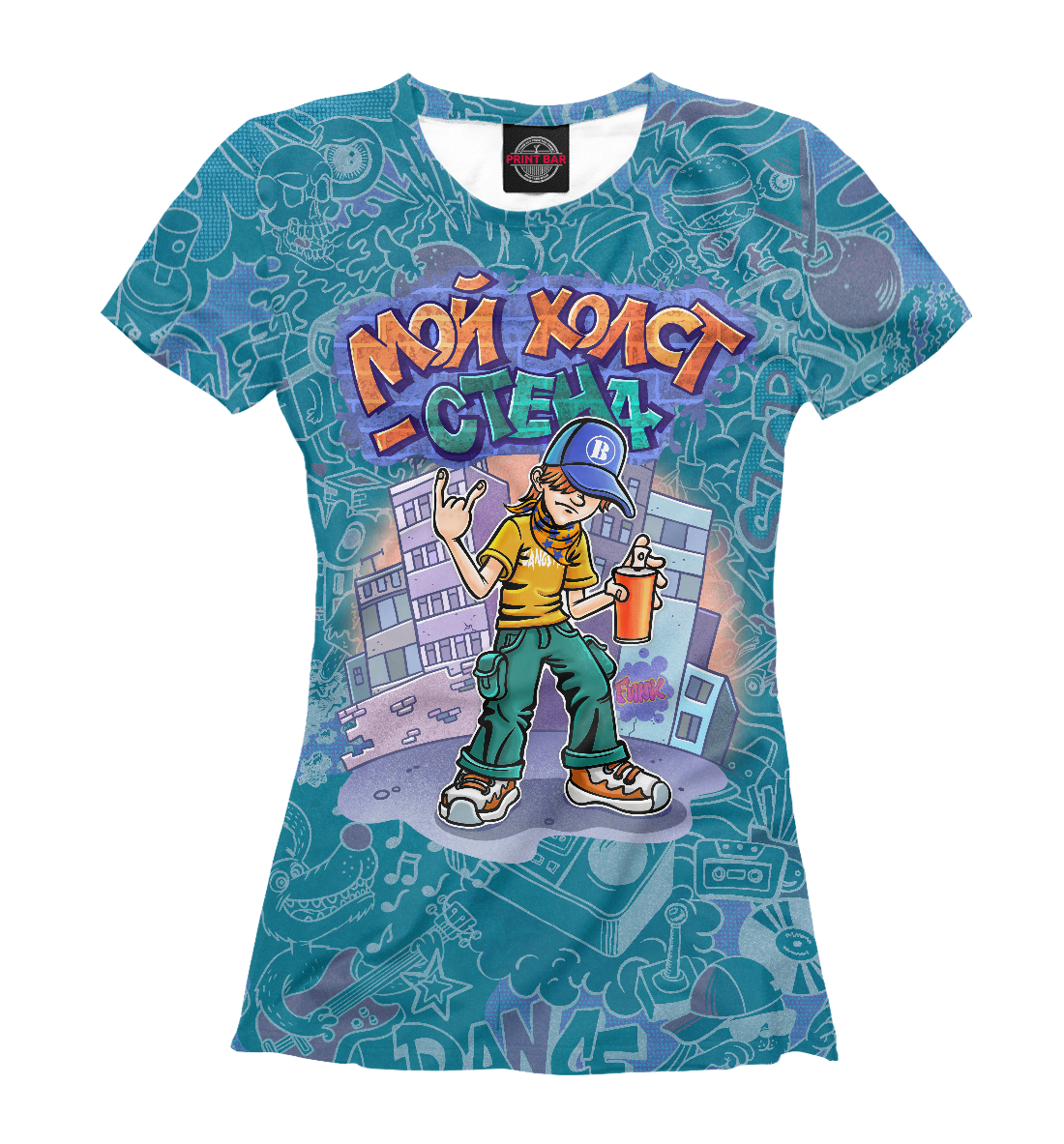 Женская футболка с принтом «Мальчик тинейджер с баллончиком краски»