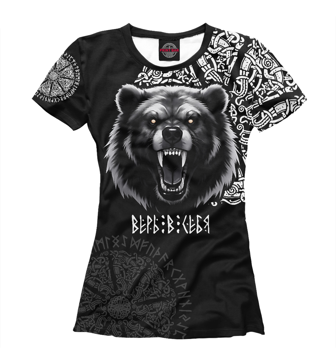 Женская футболка с принтом «Медведь Велес воин - верь в себя!»
