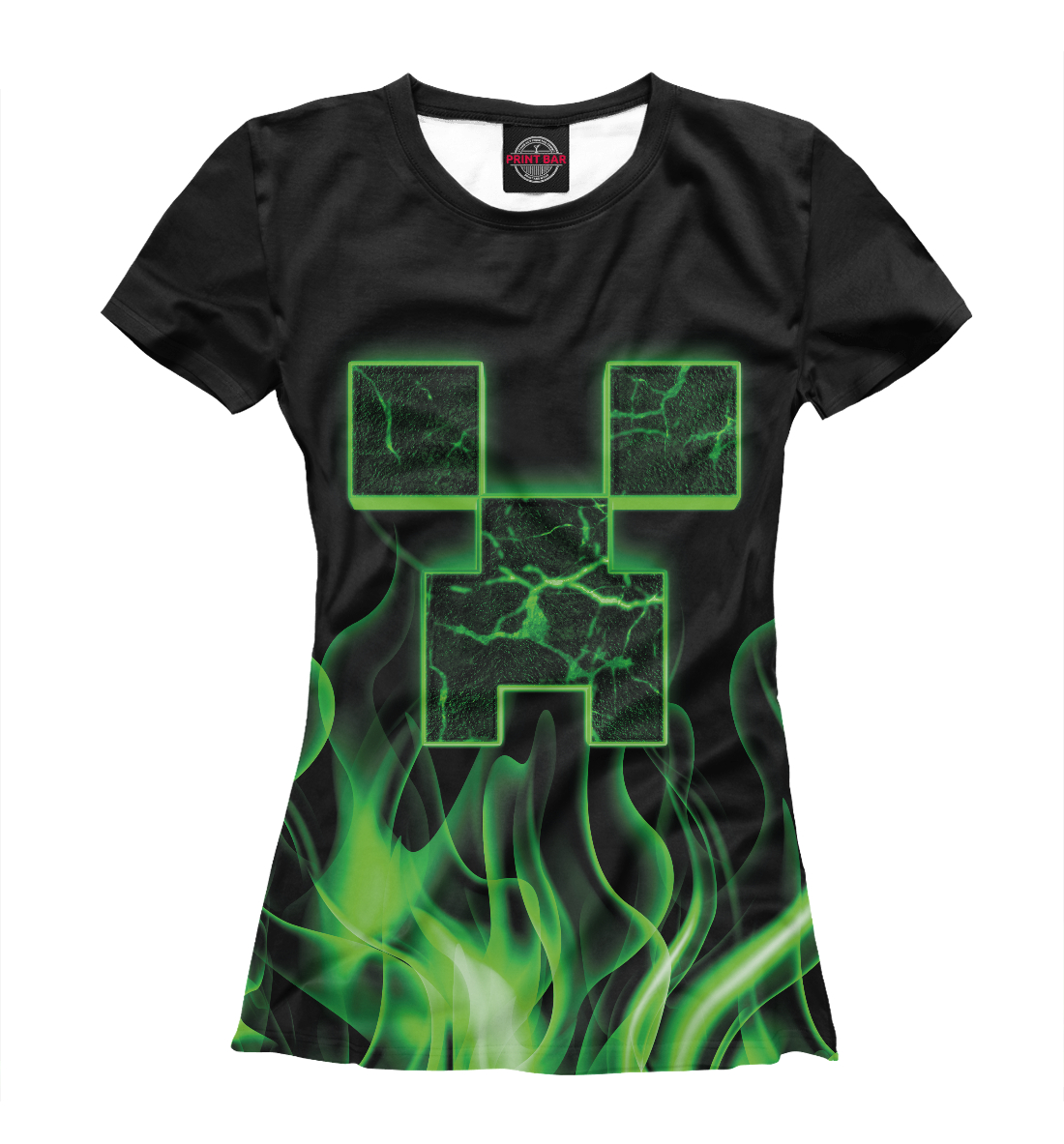 Женская футболка с принтом «Minecraft зеленый огонь»