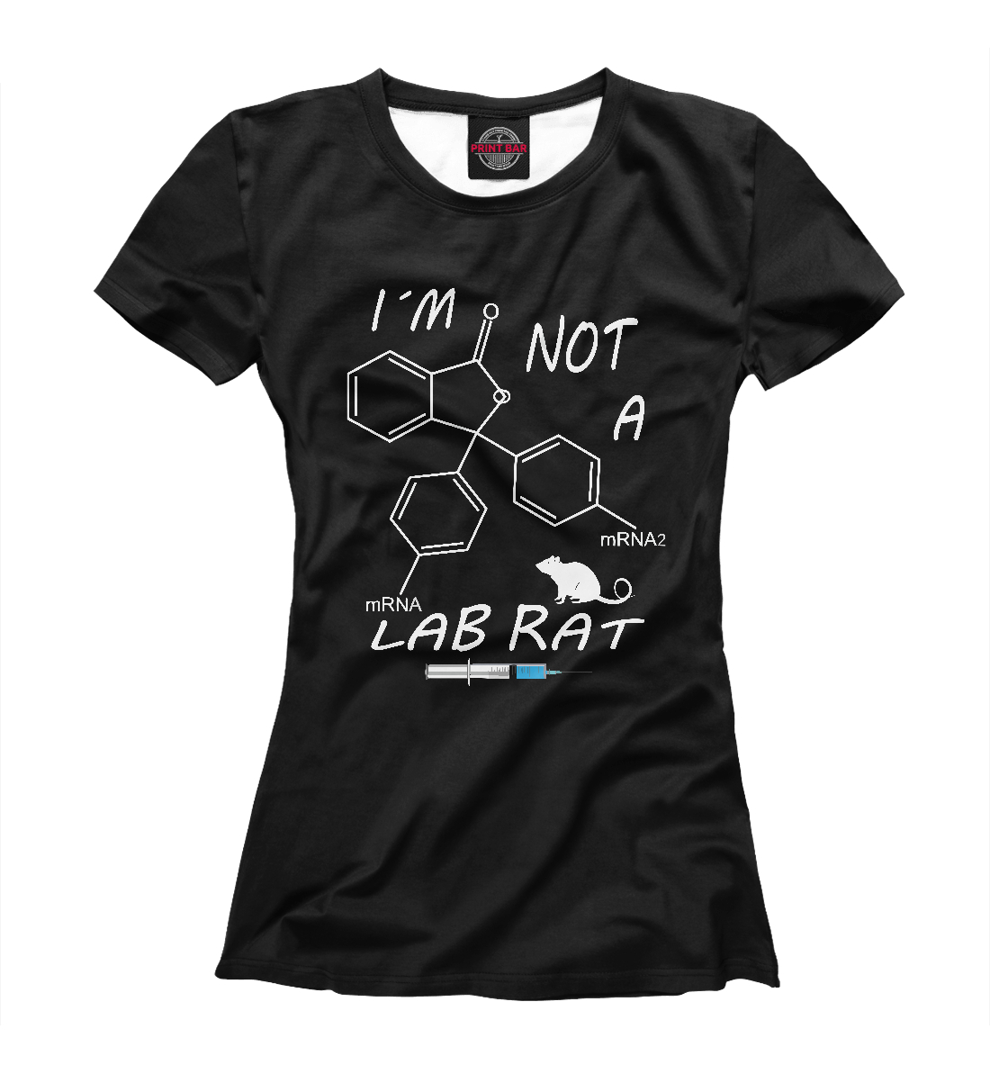 Женская футболка с принтом «Не лабораторная крыса»