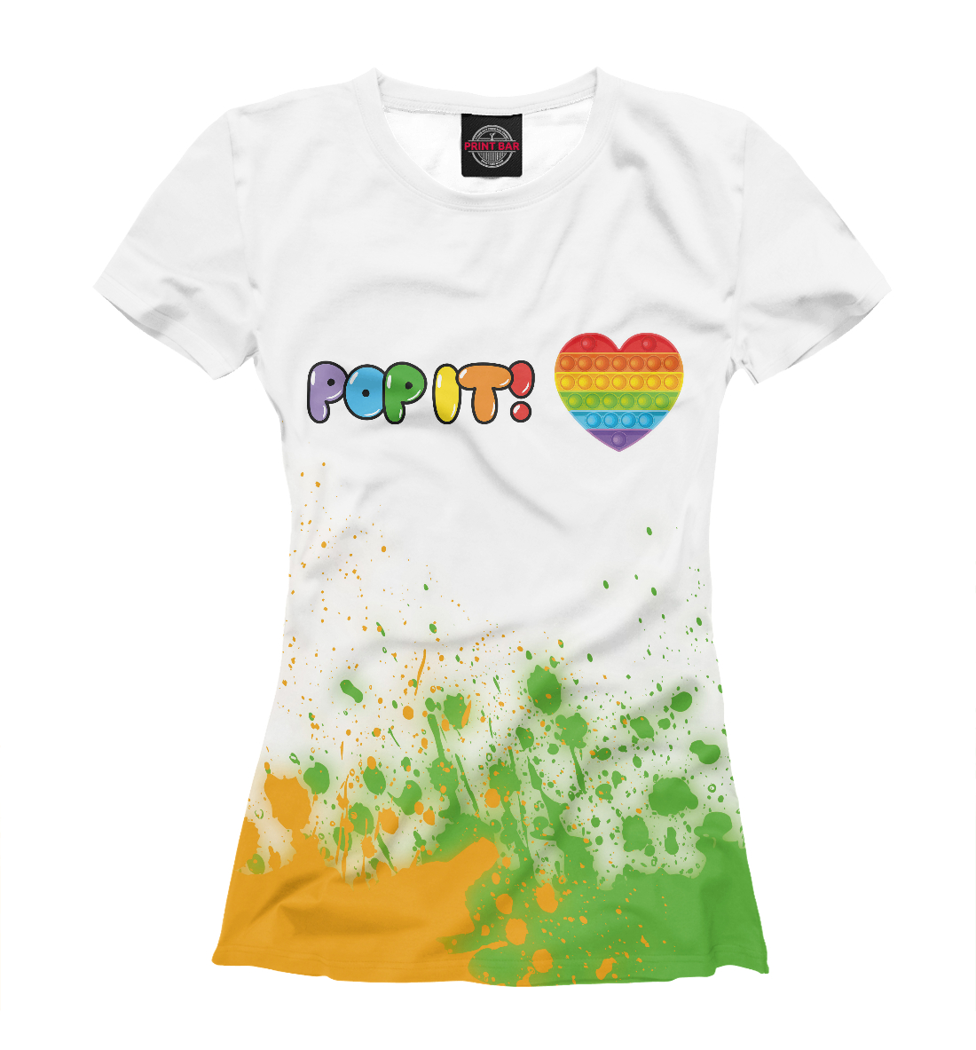 Женская футболка с принтом «Поп Ит - Сердечко - Брызги»
