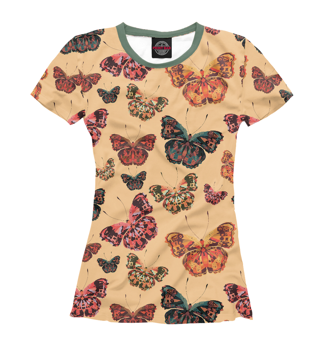 Женская футболка с принтом «Разноцветные бабочки»