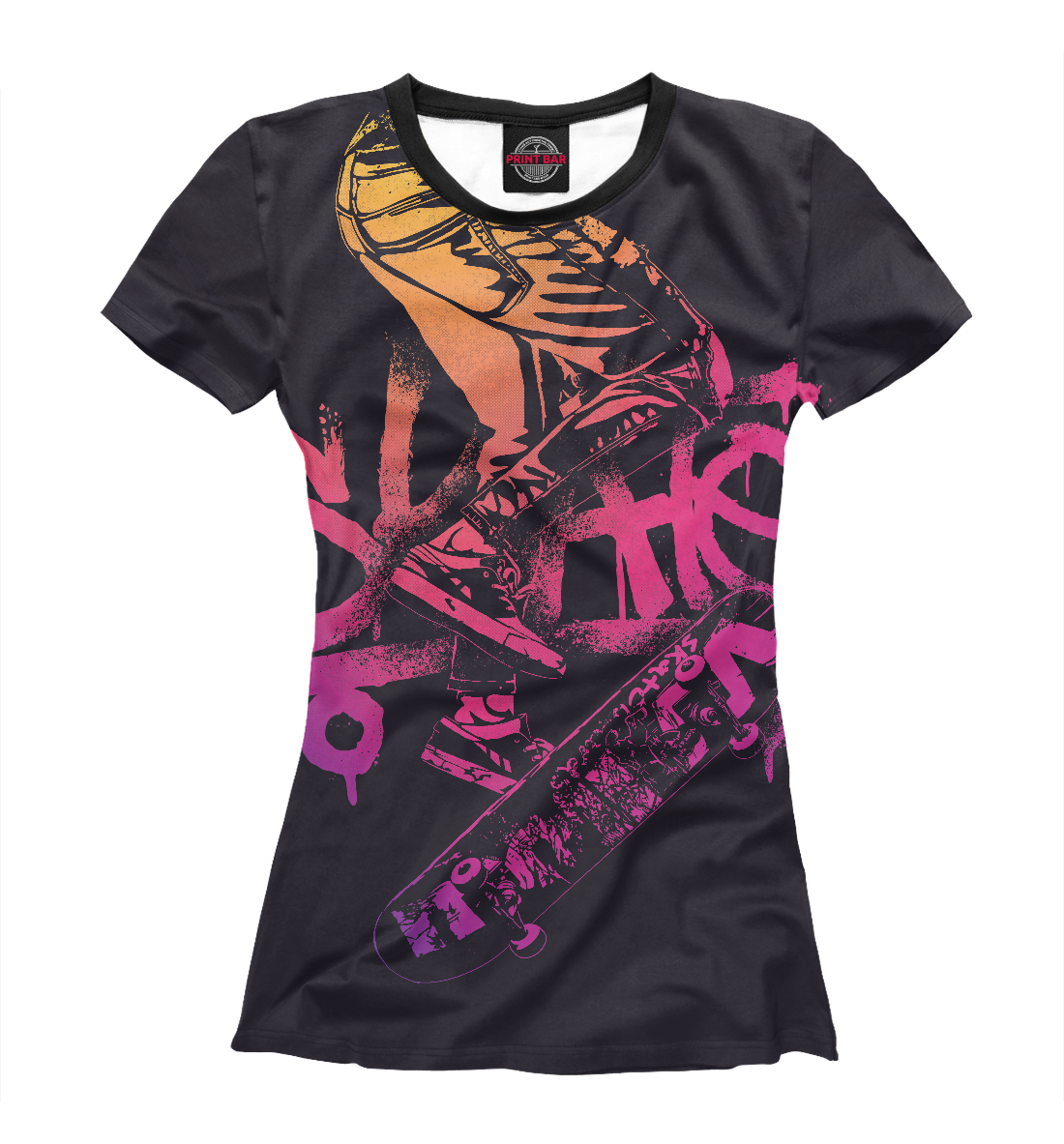 Женская футболка с принтом «Розовое Скейт Граффити»
