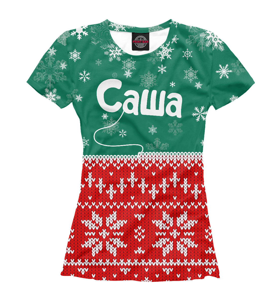 Женская футболка с принтом «Саша новогодний»