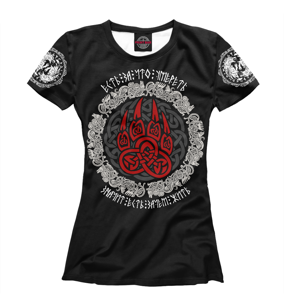 Женская футболка с принтом «Символ-оберег волчья лапа (закон волка)»
