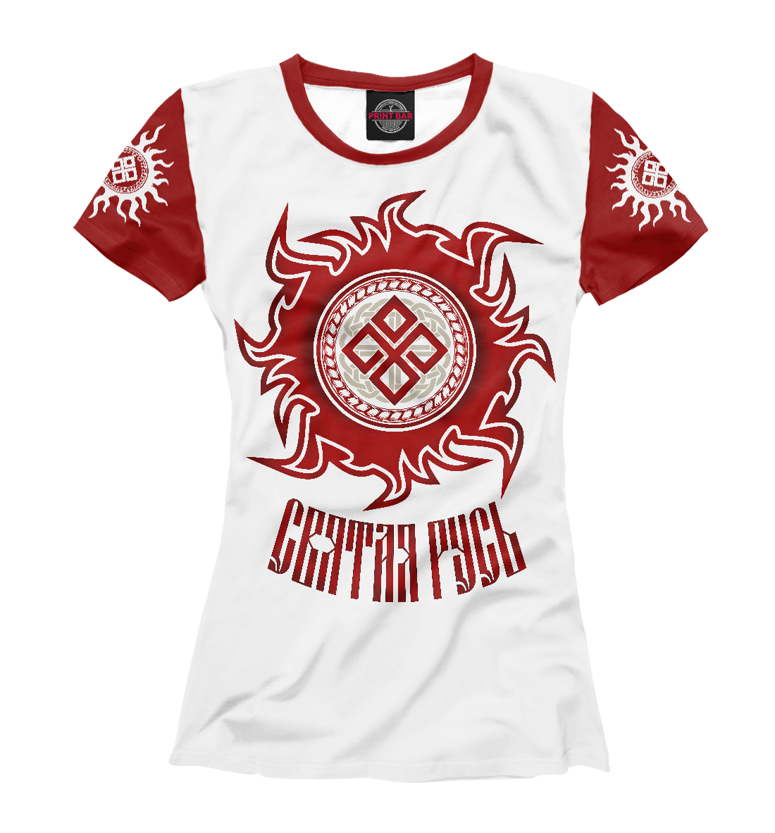 Женская футболка с принтом «Святая Русь - символика оберег Даждьбога»
