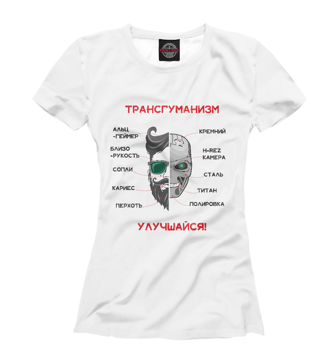 Женская футболка с принтом «Трансгуманизм, апгрейд»
