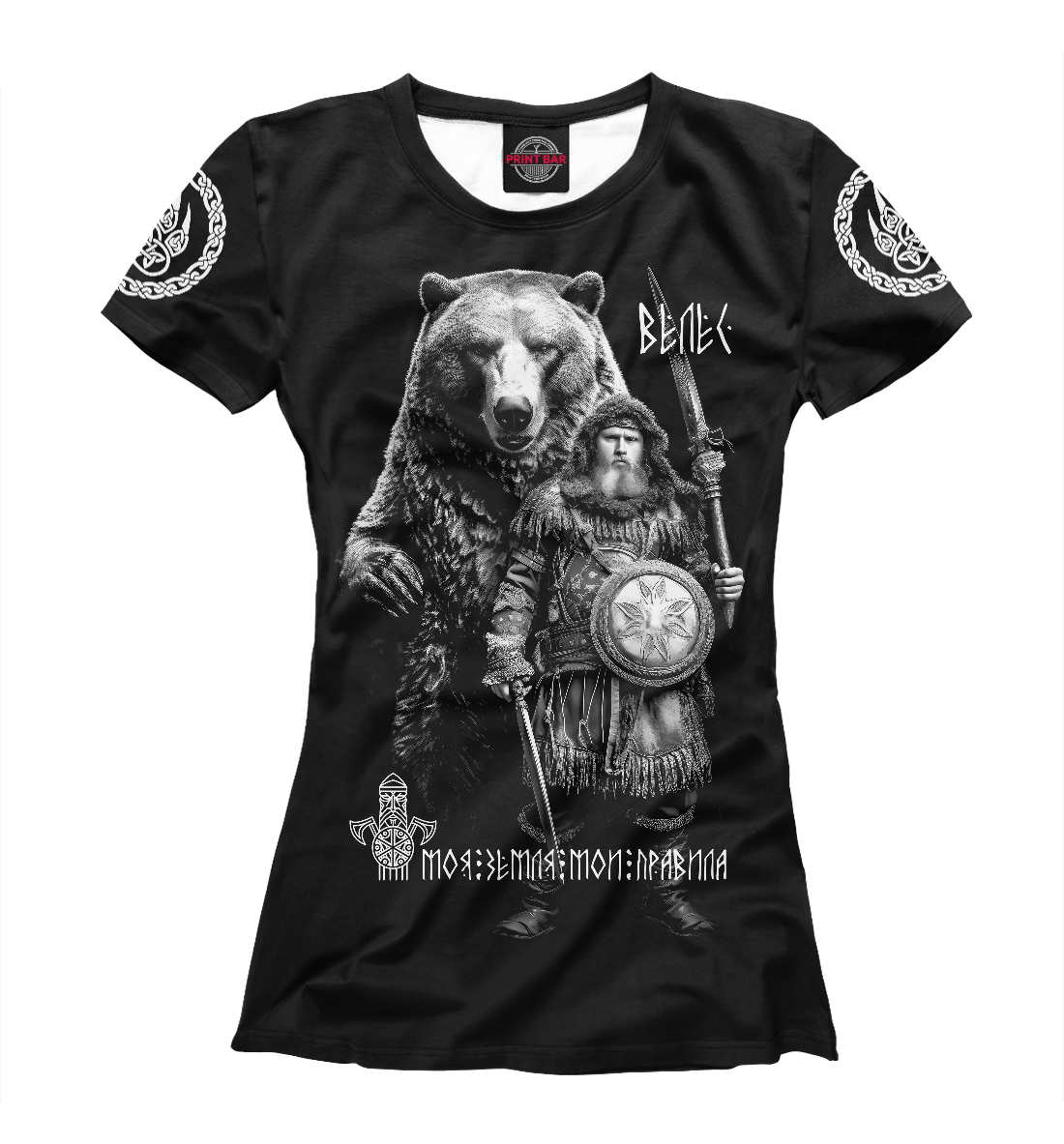 Женская футболка с принтом «Велес с большим медведем»