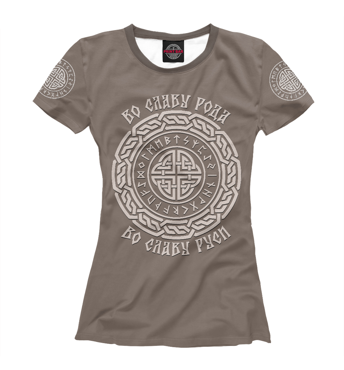 Женская футболка с принтом «Во славу Рода, во славу Руси»