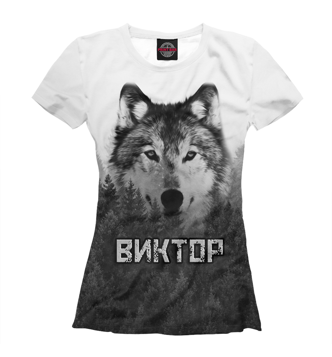 Женская футболка с принтом «Волк над лесом - Виктор»