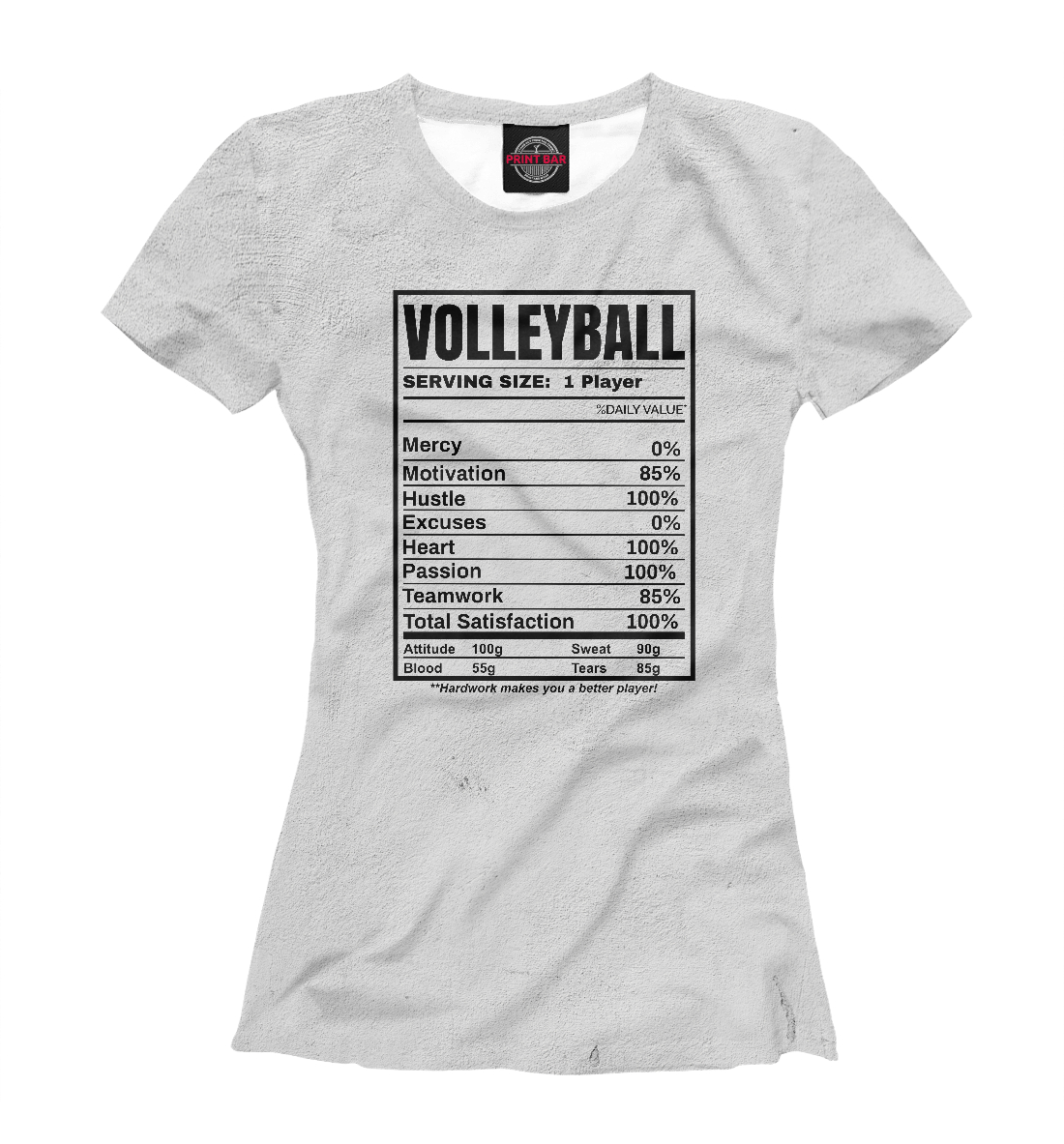 Женская футболка с принтом «Volleyball Nutrition Facts»