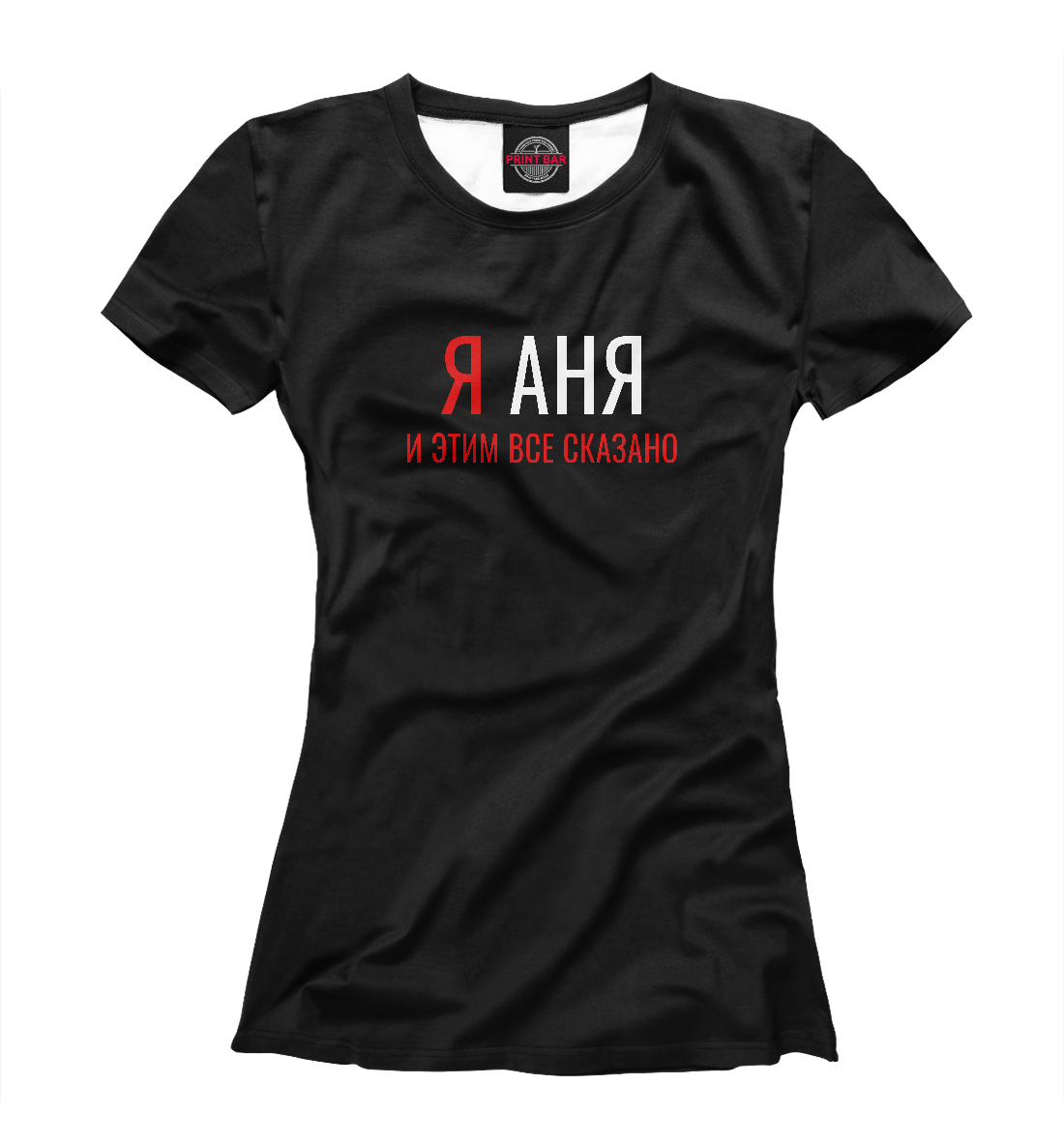 Женская футболка с принтом «Я АНЯ И ЭТИМ ВСЕ СКАЗАНО»