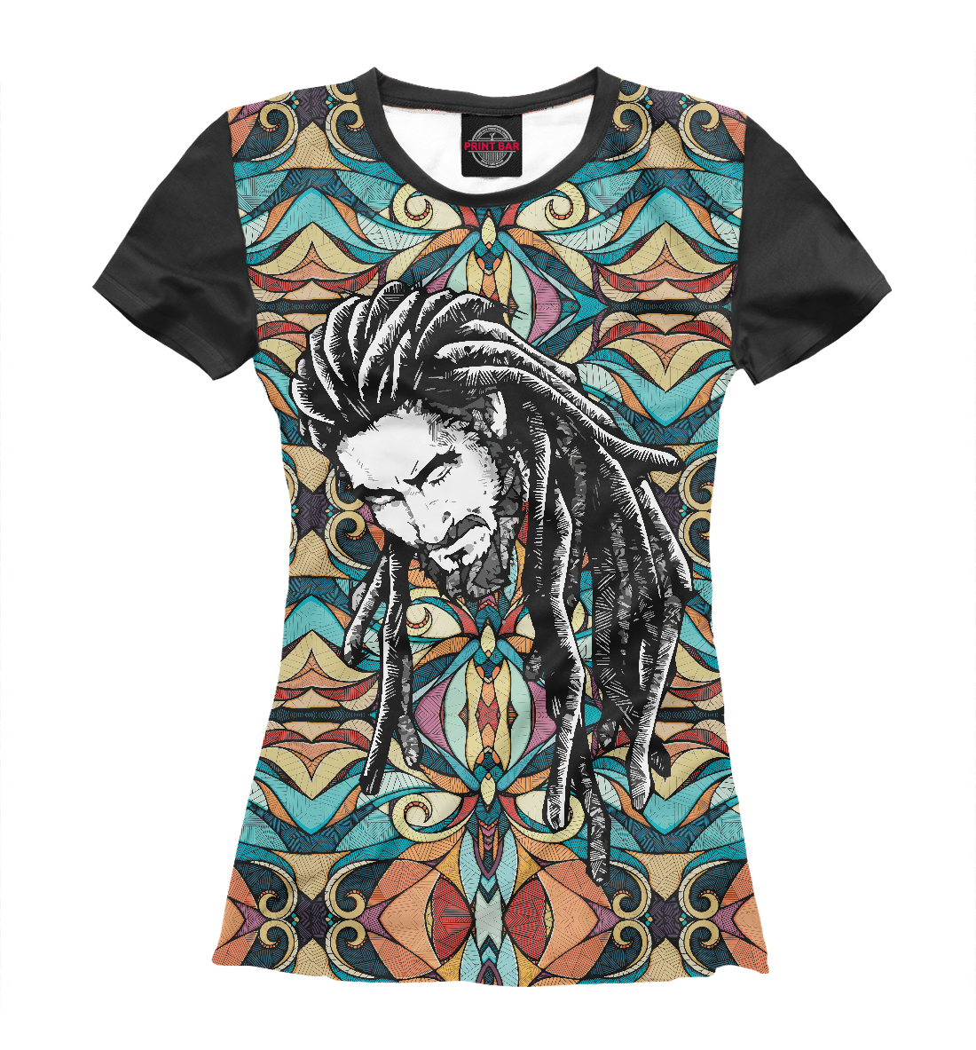 Женская футболка с принтом «Дреды в узорах»