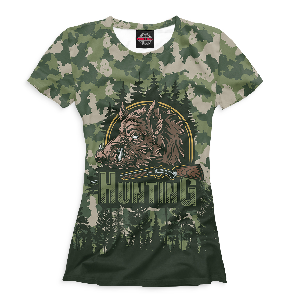 Женская футболка с принтом «Hunting весенний камуфляж»