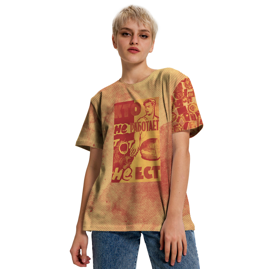 Смотрите принт "Кто не работает тот не ест" на других изделиях:
