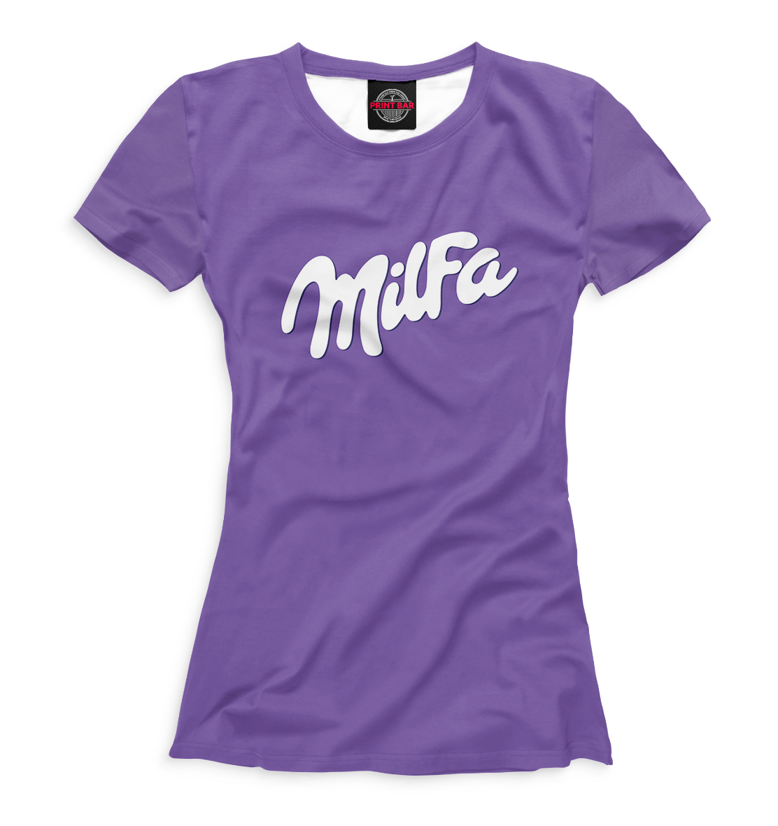 Женская футболка с принтом «Milfa на фиолетовом фоне»