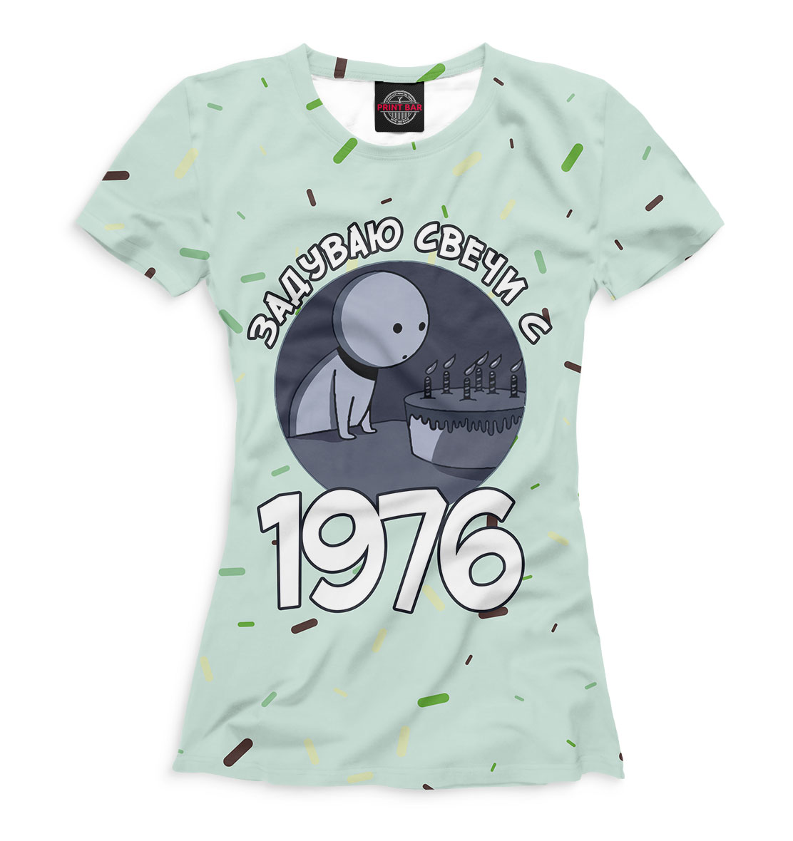 Женская футболка с принтом «Задуваю свечи с 1976»