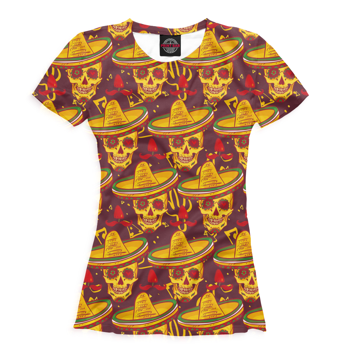 Женская футболка с принтом «Черепа в сомбреро»
