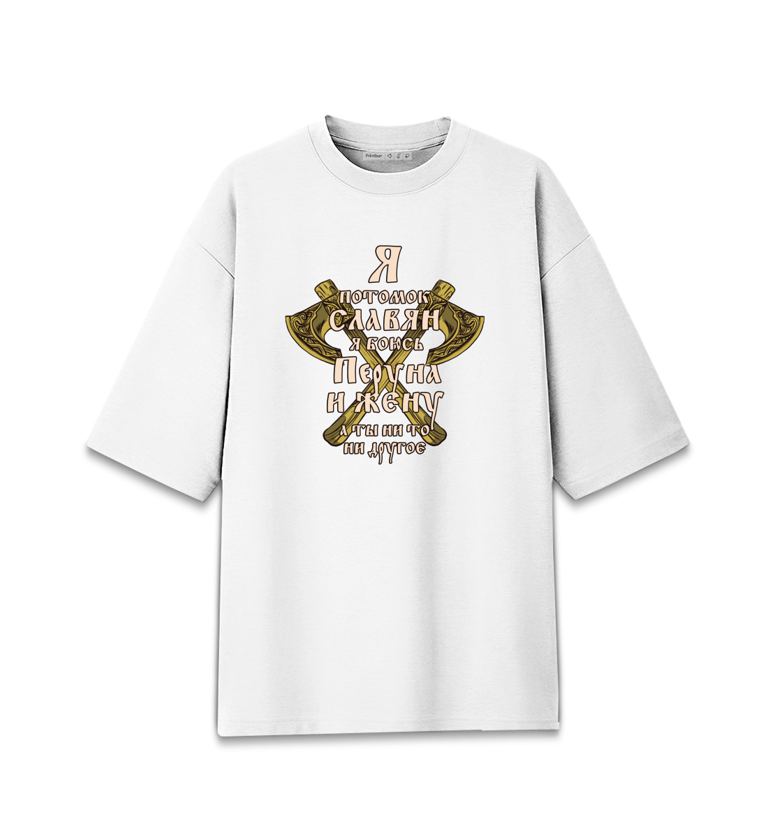 Женская футболка оверсайз Боюсь Перуна и Жену
