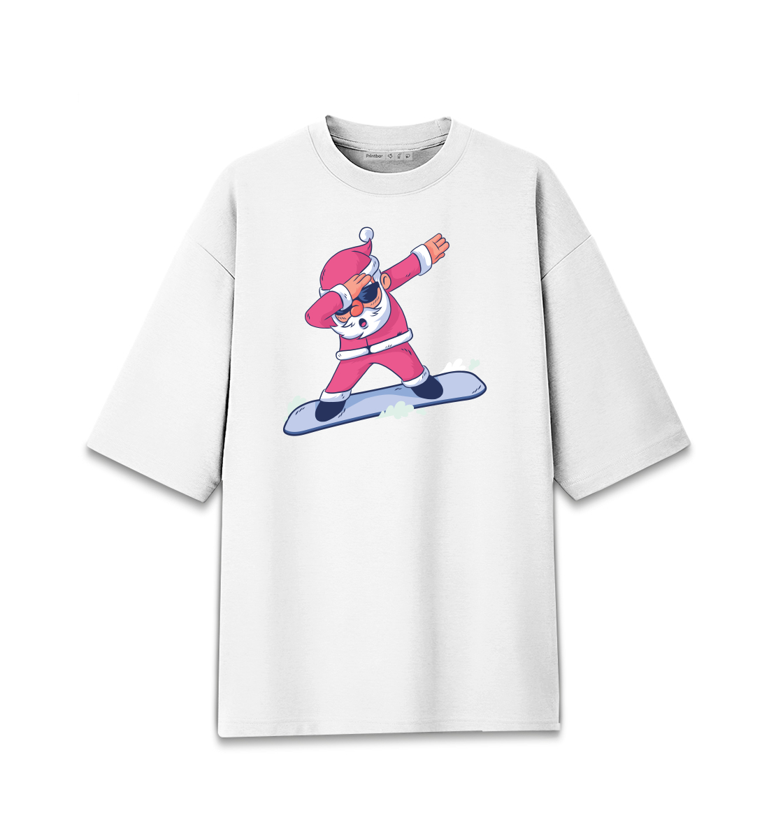 Женская футболка оверсайз Дед Мороз на Сноуборде