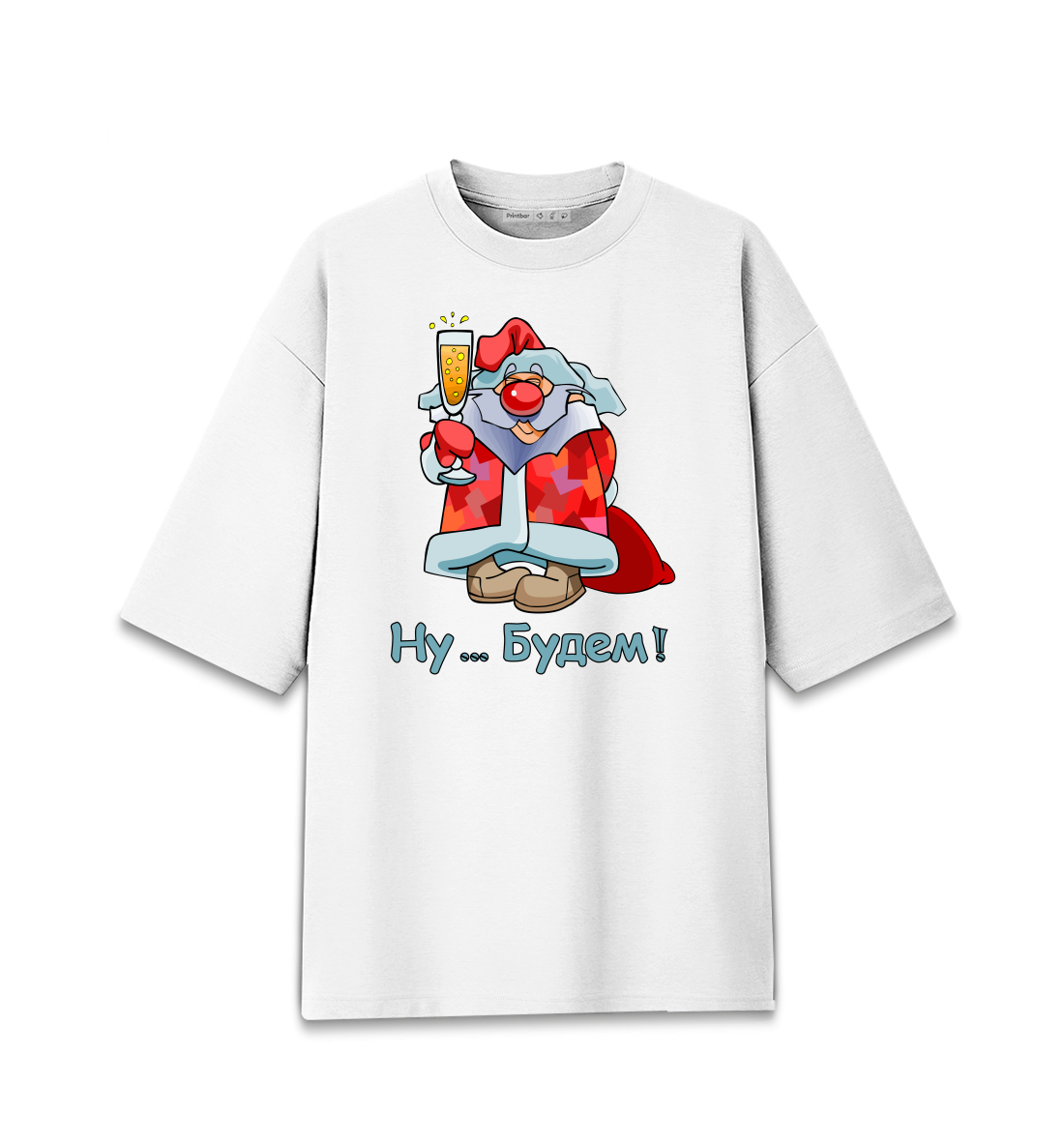Женская футболка оверсайз Дед Мороз с бокалом Ну будем!