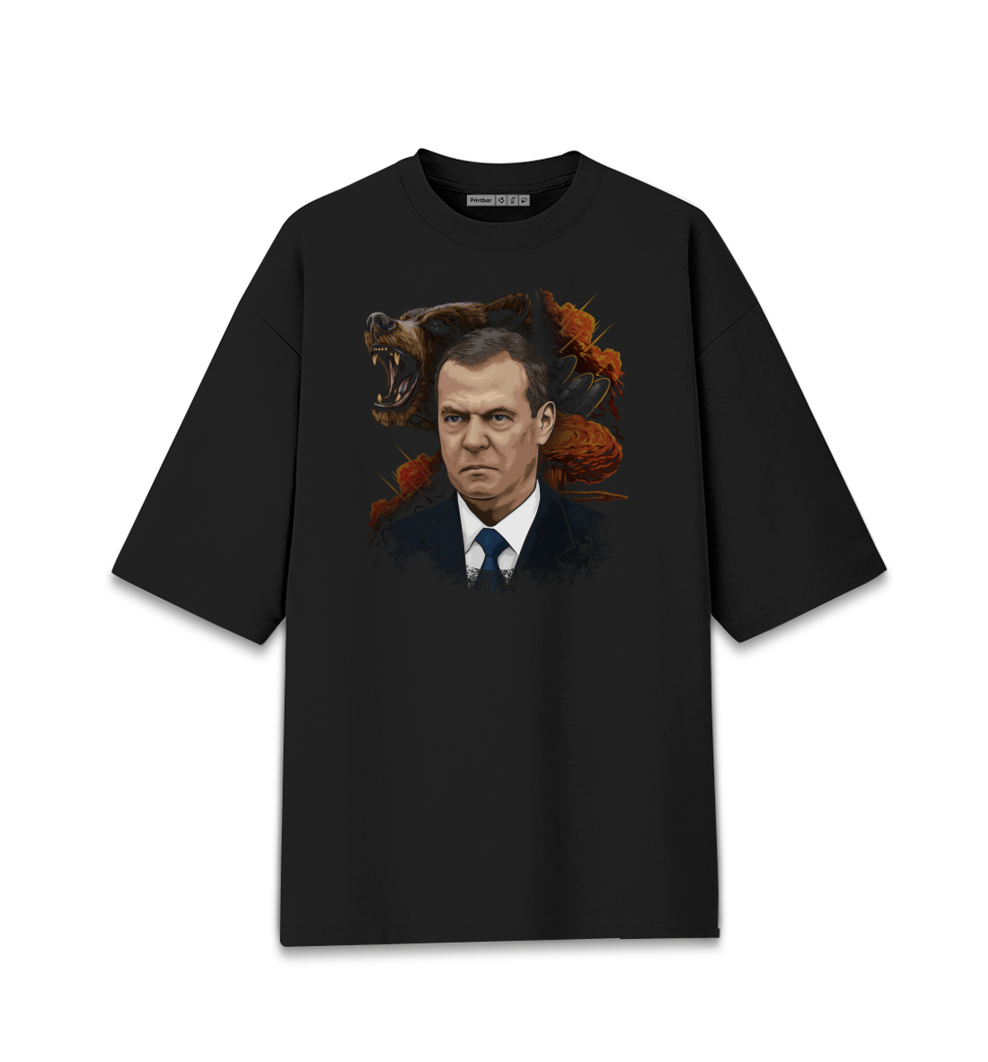 Женская футболка оверсайз Дмитрий Медведев с медведем