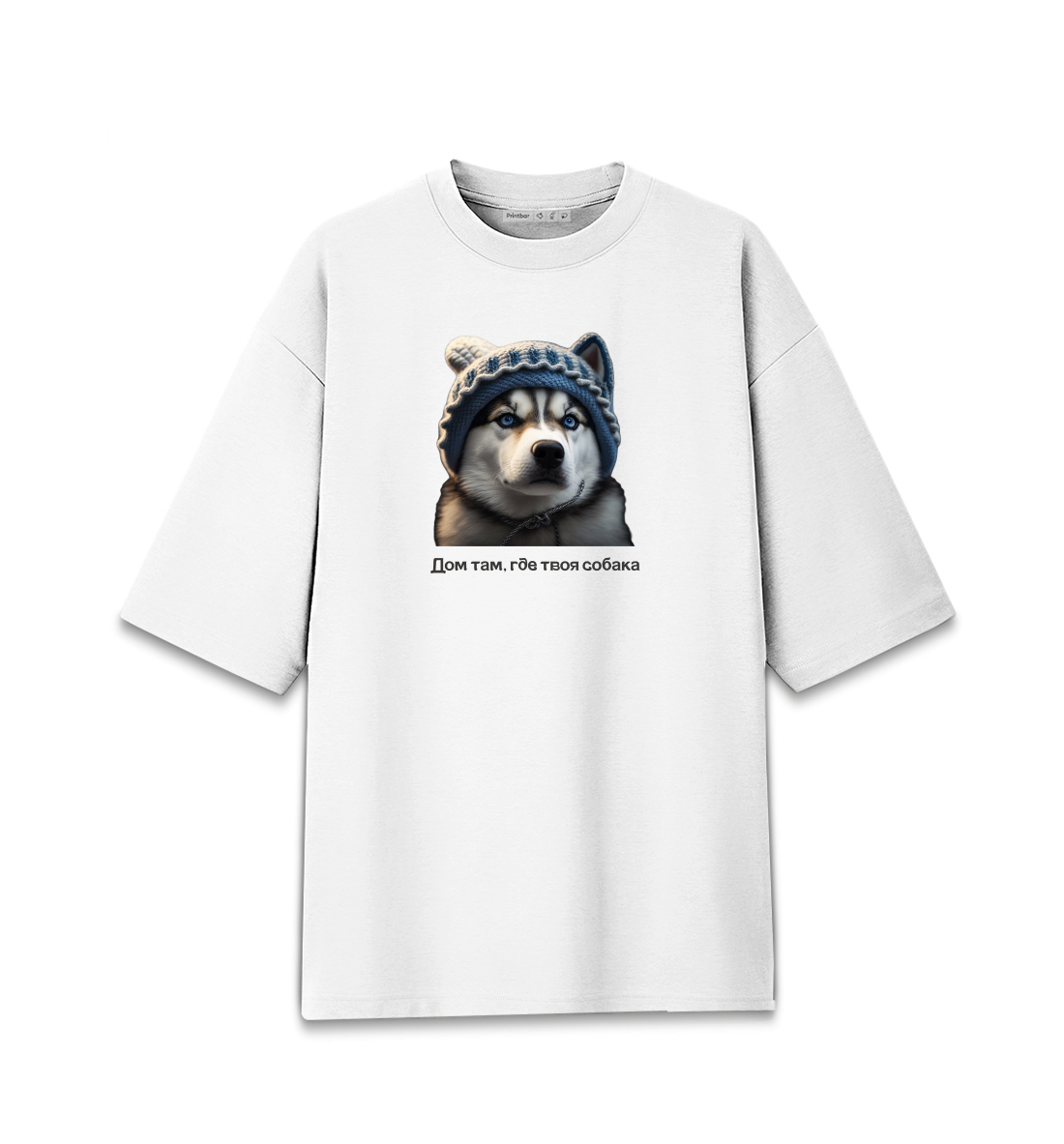 Женская футболка оверсайз Дом там, где твоя собака. ХАСКИ