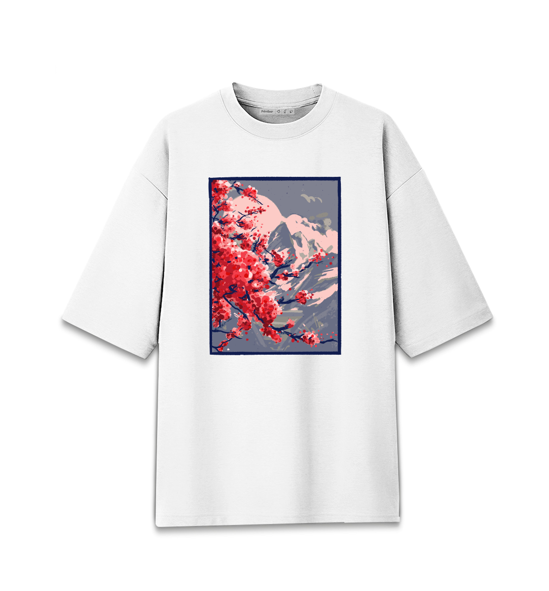 Женская футболка оверсайз Горный пейзаж Сакура