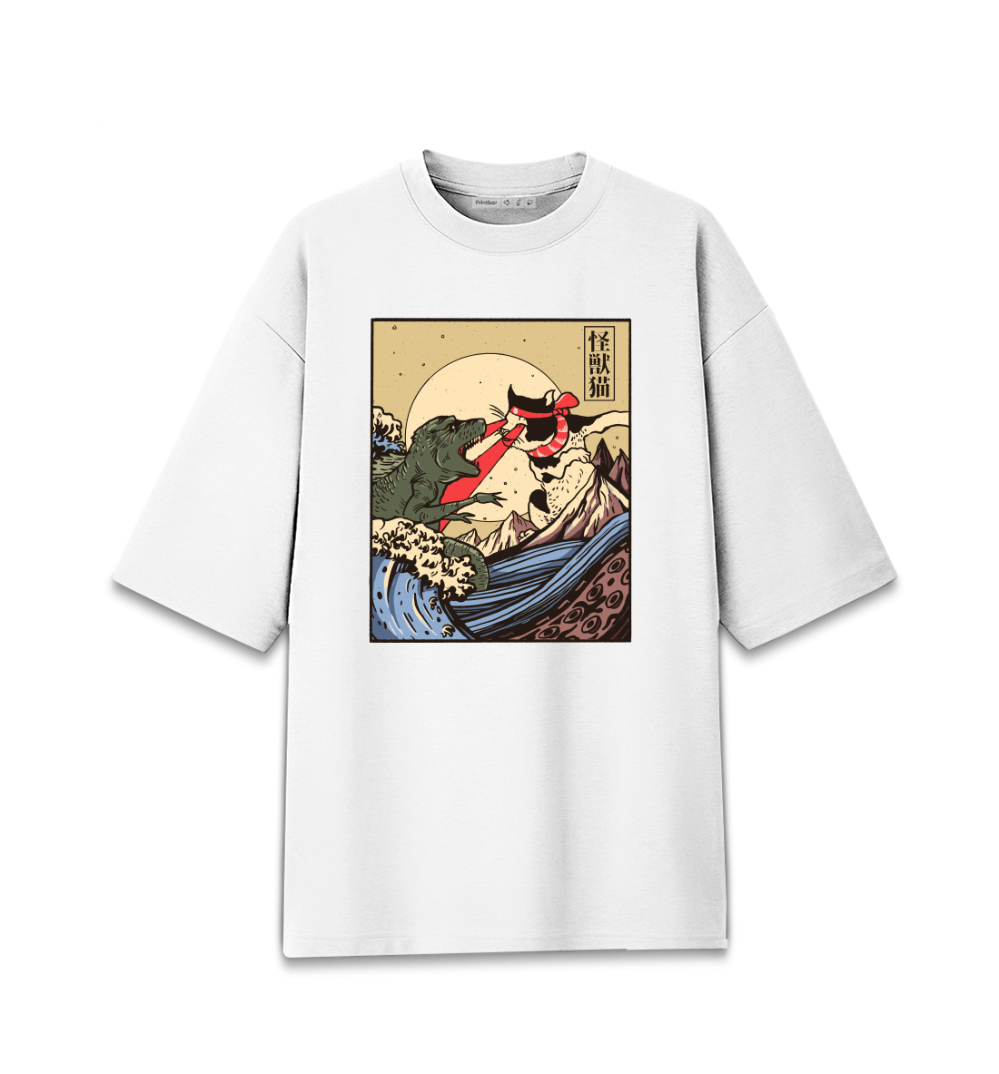Женская футболка оверсайз Japan Catzilla vs Godzilla