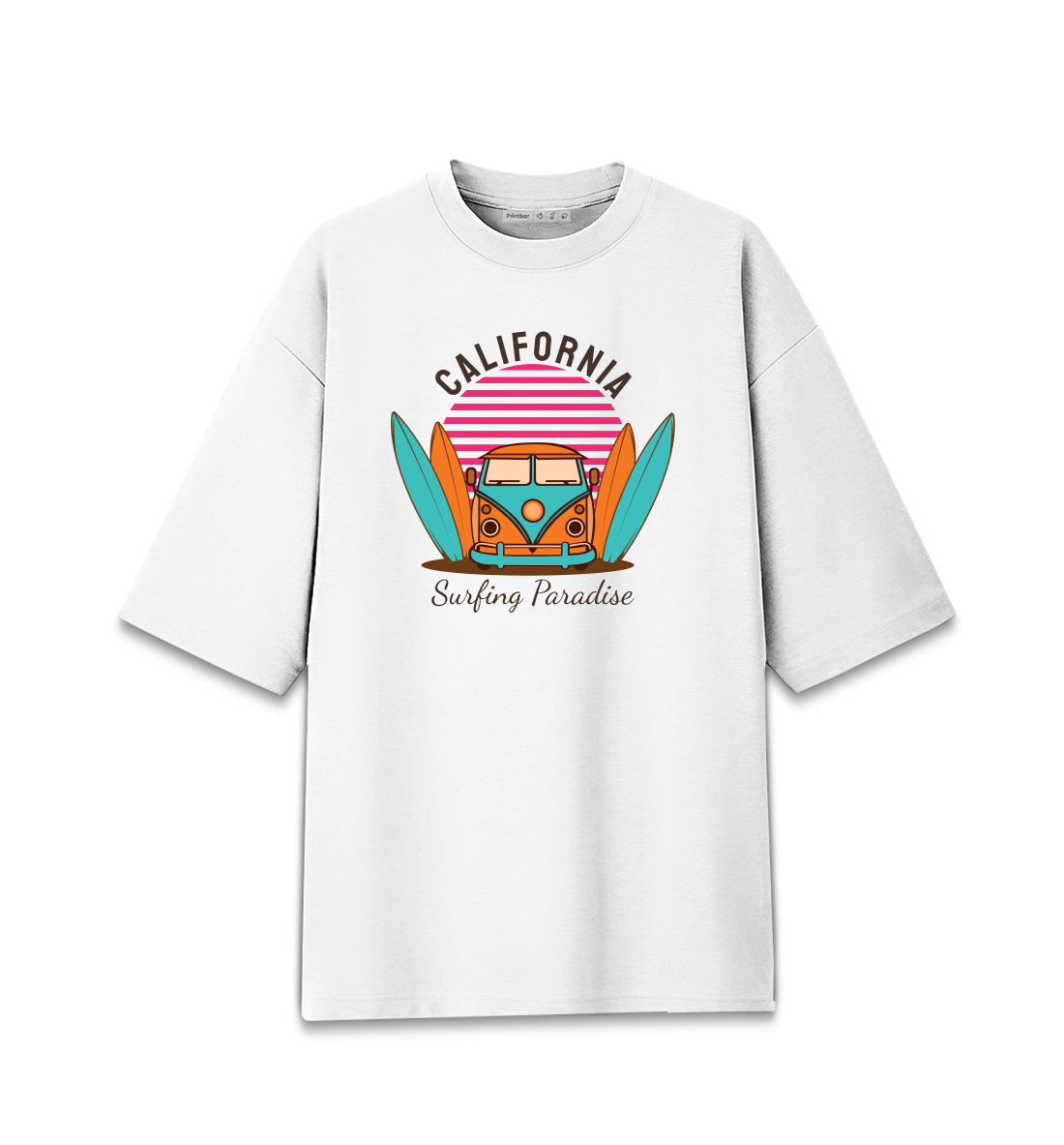 Женская футболка оверсайз Калифорния. Рай для серфера