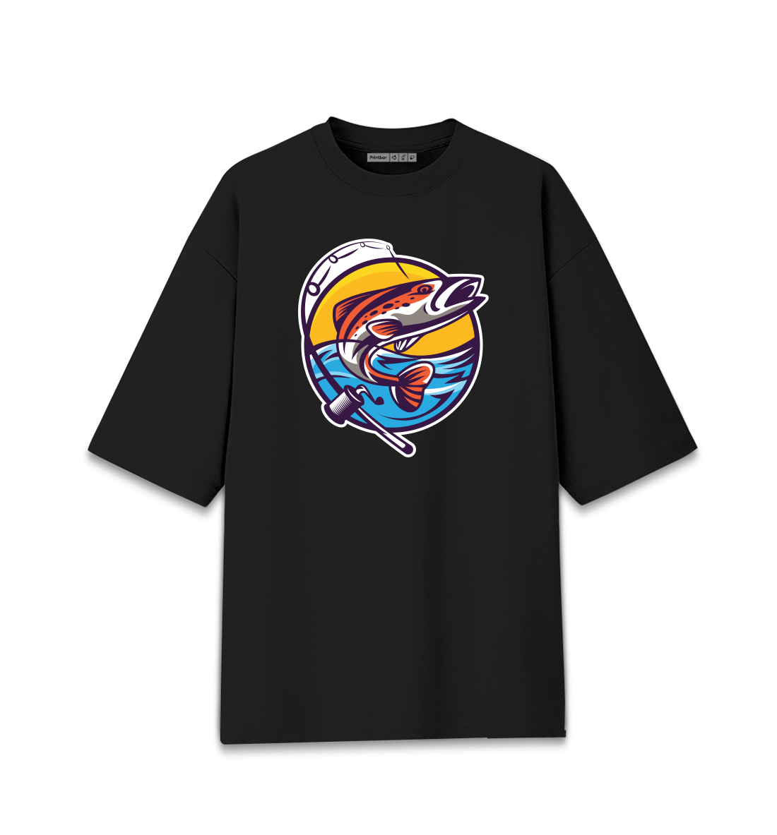 Женская футболка оверсайз Лосось пойманный спиннингом