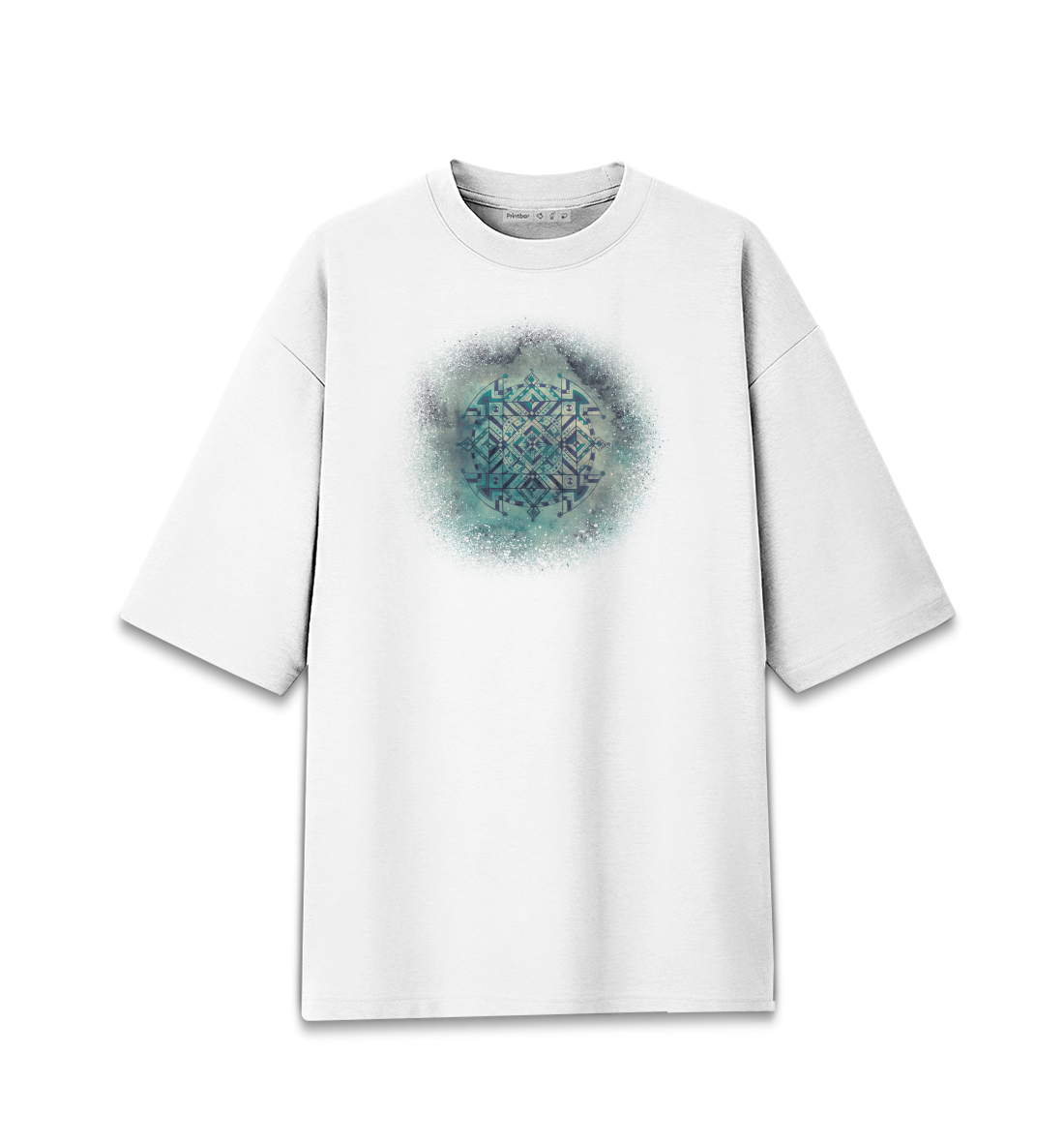 Женская футболка оверсайз Мандала спокойствия в космосе синяя