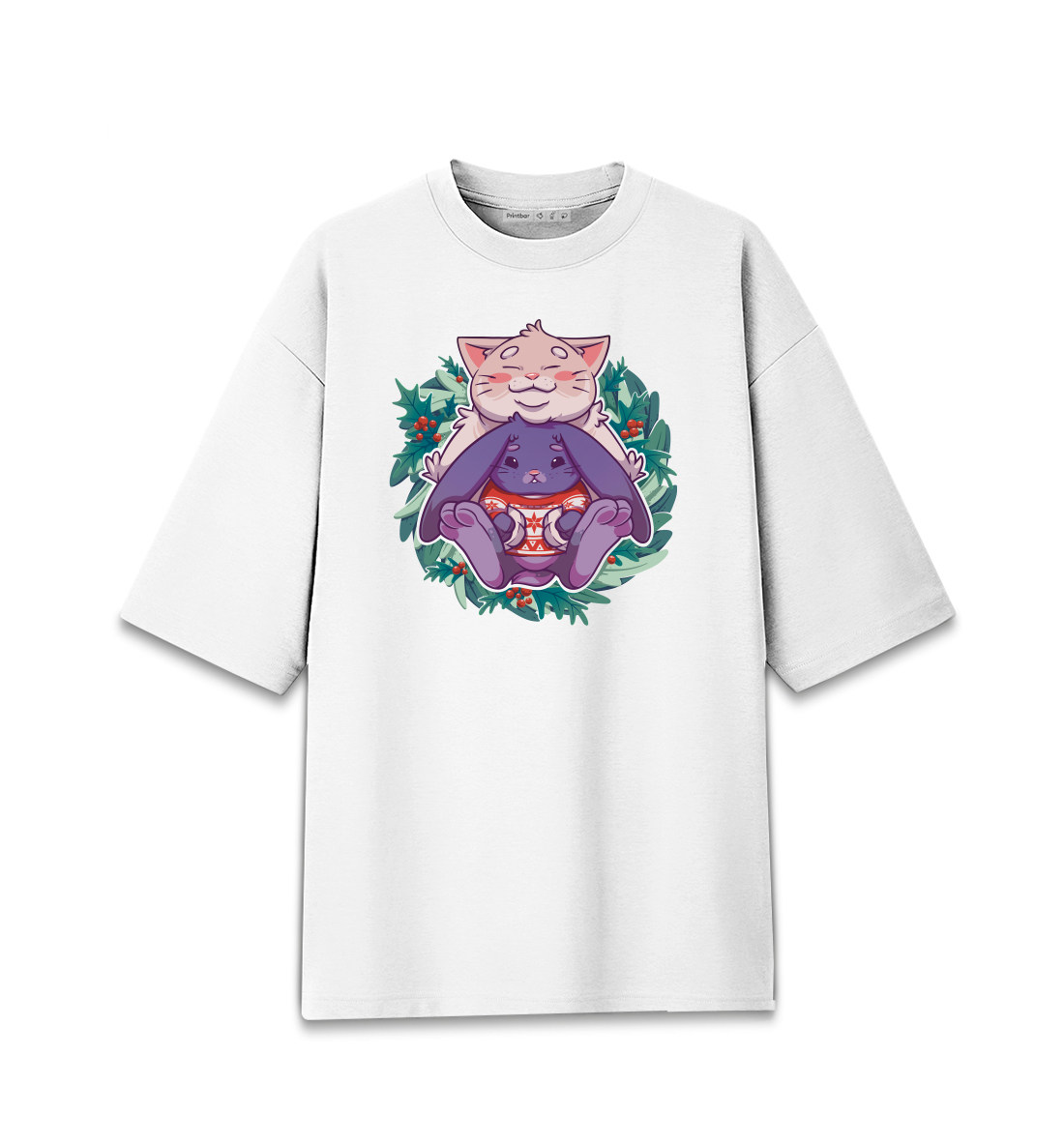 Женская футболка оверсайз Новогодние объятия