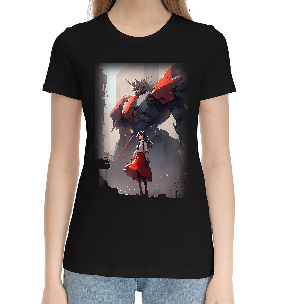 Женская хлопковая футболка Аниме девушка с роботом