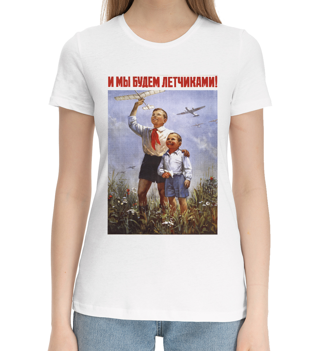 Женская хлопковая футболка Будем лётчиками