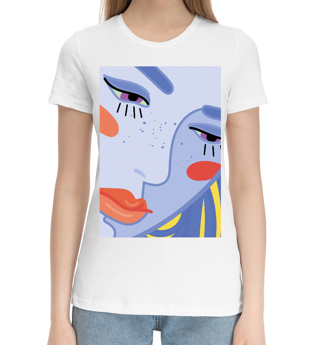 Женская хлопковая футболка Женский портрет в яркой цветовой гамме