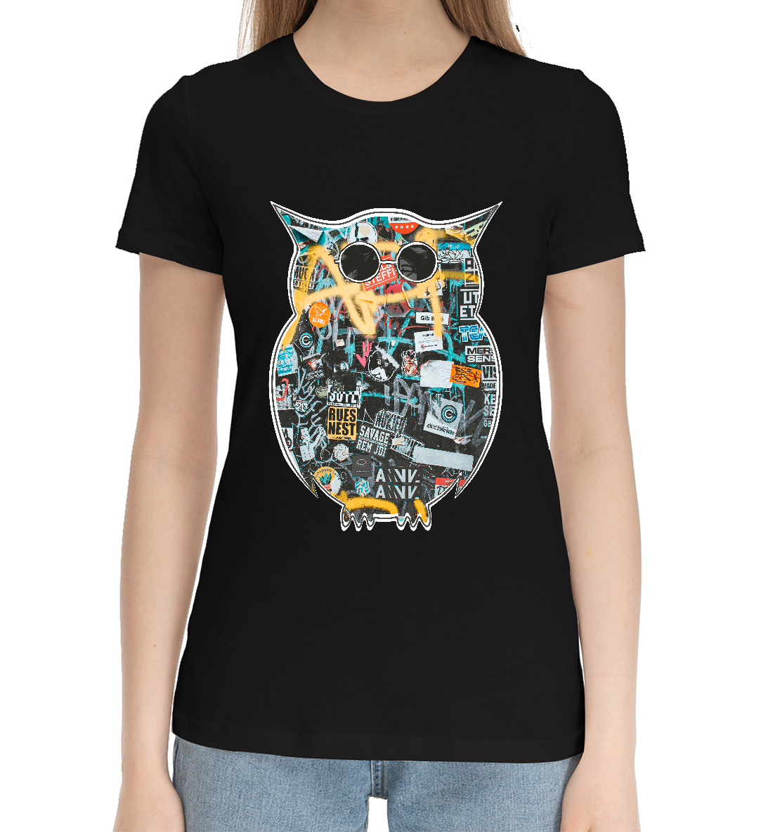 Женская хлопковая футболка Граффити сова