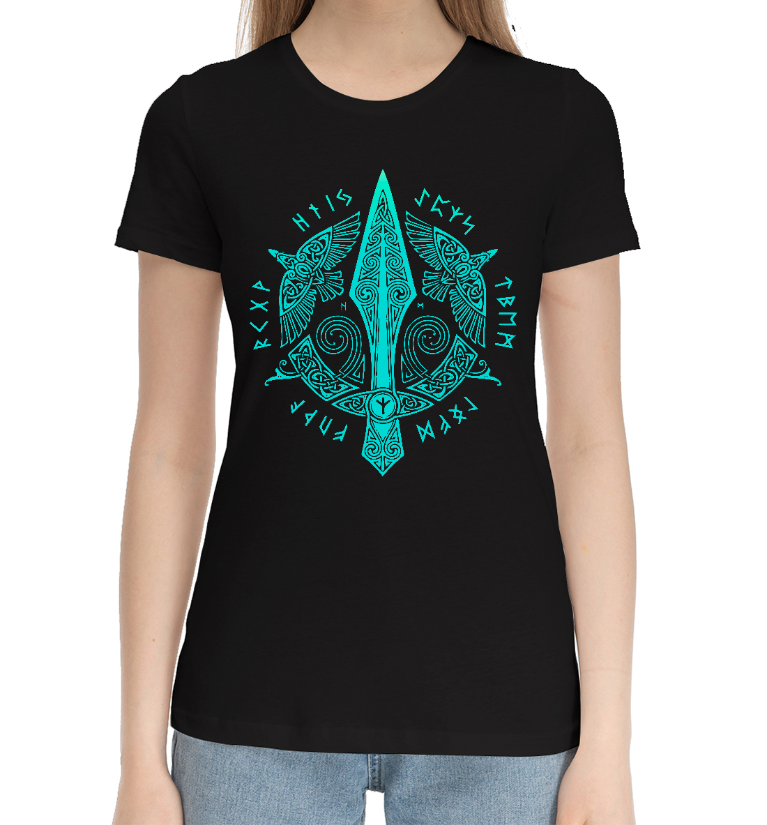 Женская хлопковая футболка Копье Одина