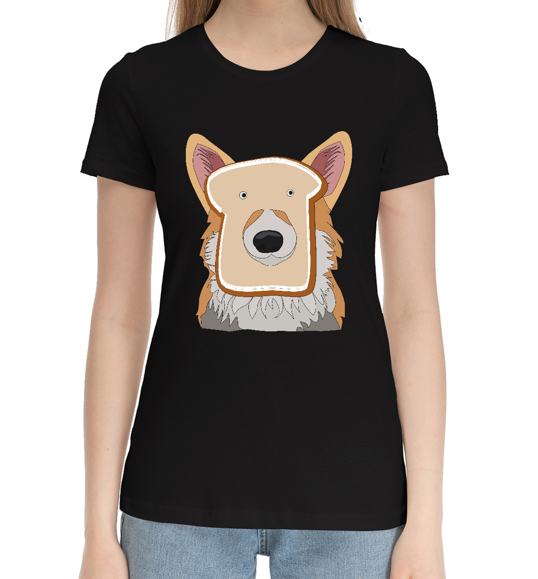 Женская хлопковая футболка Корги с тостом