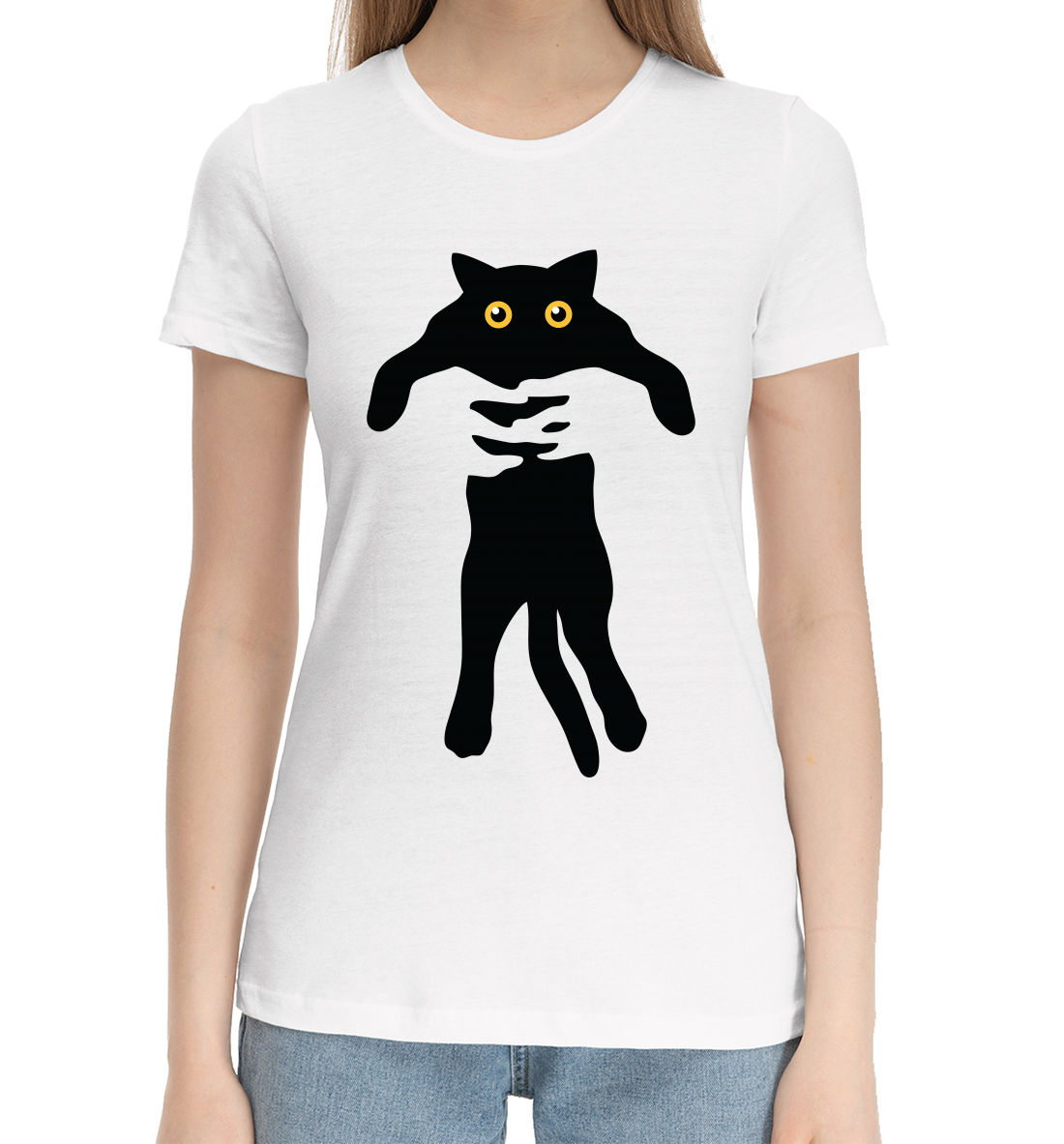Женская хлопковая футболка Кот в руках